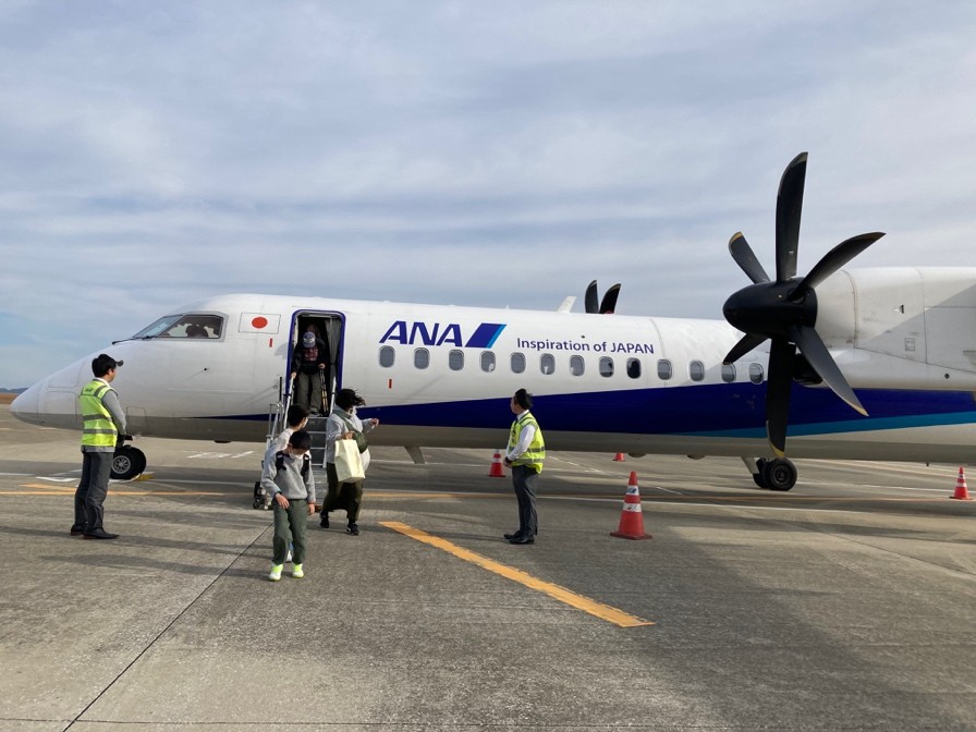 対馬やまねこ空港に到着直後。強風