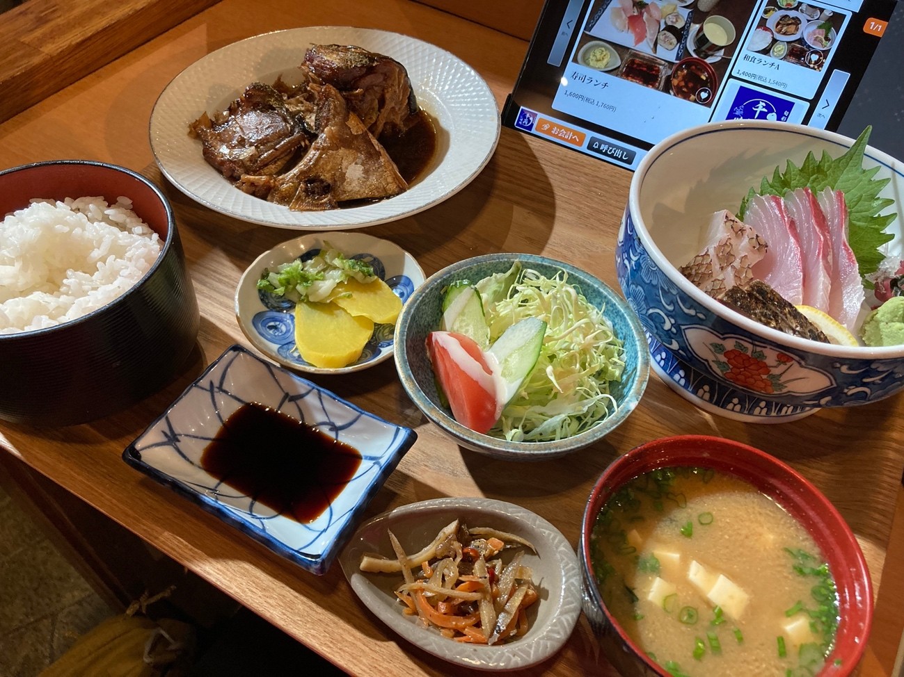 ランチは観光案内所おすすめのお店,千両へ。このグレードでランチなんと1400円!対馬最初の食事がこれで大満足!